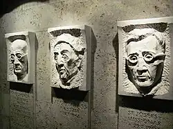 Gedenktafel und Reliefporträt Maaß` (Mitte) in der Krypta der Alten Pfarrkirche Fließ