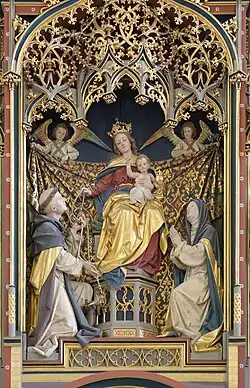 - Stauen der Muttergottes und der hll. Katharina und Dominikus, linker Seitenaltar, Pfarrkirche Maria Himmelfahrt, Völs am Schlern
