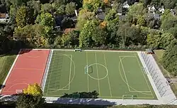 Zu den Sportanlagen zählen zwei Turnhallen neben dem Schulgebäude. Vor den Turnhallen ist ein Basketballplatz. Auf dem Schulhof sind ebenfalls Basketballkörbe und Tischtennisplatten installiert. Oberhalb des Schulhofes am Nordwestrand des Parks befinden sich ein Kunstrasen-Fußballplatz, ein Tartanplatz, fünf Tennisplätze und ein Half-Court (Wand-Platz).