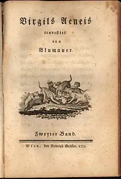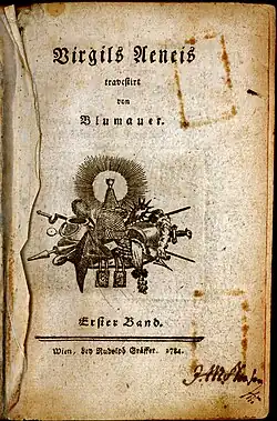 Ganz im Sinne der Reformen des aufgeklärten Monarchen Kaiser Josef II. trat Blumauer in seiner Aeneis gegen die weltliche Macht der Kirche auf und forderte deren Erneuerung. Viele Anachronismen und Anspielungen auf damalige österreichische Zustände sind in dem Werk zu finden. Goethe soll sich, aber erst nach dem Tode Blumauers, über dessen Aeneis sehr abfällig geäußert haben, was auch daran liegen mag, dass Blumauer sich mit Goethe insofern anlegte, wie er dessen Werther in der Hölle den Richtern vorführen lässt, die ihn dann dem Teufel übergeben: