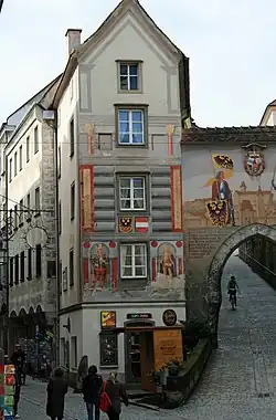 - ↑ a b Hermann Goldbacher: Denkmäler, Gedenktafeln, Inschriften in: Tausend Jahre Steyr. Festschrift anlässlich des Stadtjubiläums, herausgegeben vom Verein „Tausend Jahre Steyr“. Druck- und Verlagsgesellschaft Gutenberg, Linz 1980, S. 35