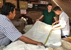 Erst mit der Unabhängigkeit der Staaten Südamerikas erkannte man erneut den Wert des Alpakas. Die Zucht wurde wieder aufgenommen und die Wolle in alle Welt exportiert, vor allem nach England.[4] Im Amtlichen Bericht über die Industrie-Ausstellung aller Völker zu London im Jahr 1851 finden Angebote von Geweben aus oder mit Alpakawolle vielfache Erwähnung.[7] Die Felle wurden um 1925 im Rauchwarenhandel noch nicht verwertet, außer dem Fleisch wurde nur die Wolle genutzt.[4] Noch 1944 maß man dem Handel mit Fellen der Lamas und Alpakas nur „eine bescheidene und rein lokale Bedeutung“ bei.[8] Um 2010 gab es etwa drei Millionen Alpakas, vorwiegend im südlichen Peru, dem westlichen Bolivien und Chile. Ein Hauptort der wollverarbeitenden Industrie und der Gerbereien von Lama- und Alpakafellen ist das 3550 Meter hoch, in einem Agrargebiet gelegene Sicuani im Süden Perus.[9]