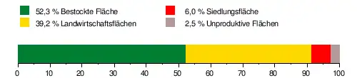 Es besteht zu 52,3 % aus bestockter Fläche, zu 39,2 % aus Landwirtschaftsfläche, zu 6,0 % aus Siedlungsfläche und zu 2,5 % aus unproduktiven Flächen.