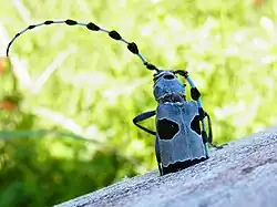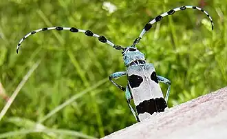 Der Alpenbock (Rosalia alpina) ist ein Käfer aus der Familie der Bockkäfer (Cerambycidae).[1] Durch seinen Schutz auf europäischer Ebene ist der Alpenbock in allgemeineres Interesse gerückt. Sein Bild erscheint in verschiedenen Ländern auf Briefmarken und als Logo von Zeitschriften und Naturparks.[2]