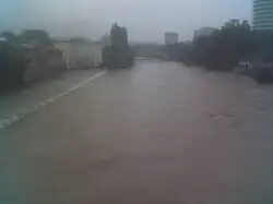 Am 23. August stieg der Pegel der Isar[21] auf Jahrhunderthöchststand (Qmax ~ 980 m³/s). Einen Tag später wälzte sich die Scheitelwelle auf Freising zu. Die Lage verschärfte sich, nachdem der Sylvensteinspeicher geöffnet werden musste. Mehrere Ortschaften im Einzugsbereich der Isar wurden überflutet.