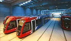 Zudem erhielt 2015 das 1999 zusammen mit Shanghai Rail Traffic Equipment Development (SRTED) gegründete Joint Venture Shanghai Alstom Transport (SATCO) seinen ersten Citadis-Auftrag, so dass auch eine Produktionsstätte in der Volksrepublik China hinzukam.[25] Später wurden auch Fahrzeuge in den CRRC-Werken Changke und Changchun hergestellt.[26][27] Auch in diesen Fällen wurden mindestens die Fahrwerke aus Frankreich zugeliefert.[18][25][28]