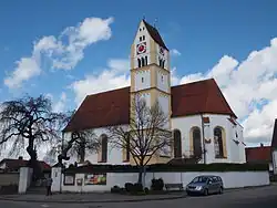 Das Kirchdorf[2] grenzt südlich an Biessenhofen und liegt im Wertachtal rechts der Wertach etwas nördlich der Kreuzung der Bundesstraßen 12 und 16. Der Straßenverlauf beider Straßen im Ortsgebiet wurde 1974 bzw. 1978 neu trassiert.