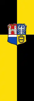 Banner: „Das Banner ist gelb-schwarz längsgestreift mit schwarz-gelbem Bannerhaupt und aufgelegtem Wappen an der Schnittstelle zwischen Bannerhaupt und unterem Teil.“ |