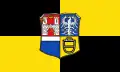 Hissflagge: „Die Flagge ist schwarz-gelb viergeteilt mit dem aufgelegten Wappen in der Mitte.“ |