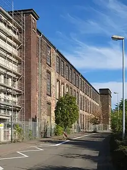 Kernstück der Anlage ist das Spinnereigebäude aus Backstein und Sandstein mit drei Geschossen und einem Kellergeschoss. Die Geschossebenen bestehen aus nahezu durchgehenden 5 m hohen Räumen mit großen Fenstern und werden von genieteten Stahlstützen beherrscht.
