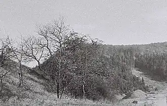 ![]() Das Lang Tal und der Burgberg – Ansicht von Westen (Sommer 1990) | ||