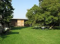 - Försterei mit Forsthaus, Pferdestall, zwei Scheunen und Erdkeller.