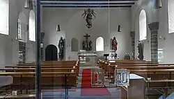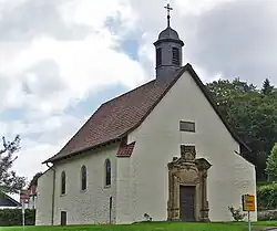 Die ehemalige Wallfahrts- und Vikariekirche steht am alten Kirchweg 46. Das ursprüngliche Gebäude war ein gewölbter Saalbau von drei Jochen und einer halbrunden Apsis. Der Bau wurde 1864 nach Westen erweitert. Im Zweiten Weltkrieg wurde die Kirche stark zerstört und danach stark verkleinert und in vereinfachter Form mit einer Balkendecke wieder aufgebaut. Zurzeit wird das Gebäude als Friedhofskapelle genutzt.