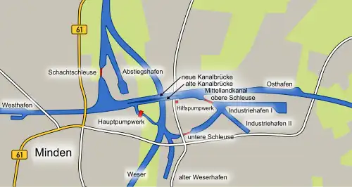 - ↑ Buchholz: Entwicklung und Bedeutung des Wasserstraßenkreuzes Minden, IN BAW Mitteilungen Nr. 104/2018. In: zw.baw.de. Abgerufen am 18. Oktober 2020.