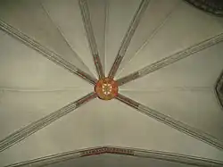 1982: Sicherung der Ostwand der Kirchenhalle durch Anbringung on Edelstahlankern. Einer davon ist sichtbar im Ansatz des Triumphbogens.