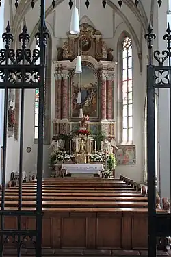 Um 1414 baute man den gotischen polygonalen Chor an die Kirche an. Im Laufe des 16. Jahrhunderts wurde die romanische Kirche umgestaltet, indem man im Langhaus ein Sternrippengewölbe einzog und 1529 einen ebenfalls mit Sternrippengewölbe versehenen Portalvorbau errichtete. Der Turm erhielt einen Spitzhelm. Bereits 1519 wurde die Erasmuskapelle mit polygonalem Schluss fertiggestellt.