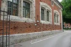 In der Nähe des Eingangs zum südlichen Innenhof schlug während der Bombardierung eine Sprengbombe ein. Mehrere Personen, die es nicht mehr rechtzeitig in die Schutzräume oder die unterirdischen Anlagen des Quellenbaus geschafft hatten, fanden dort den Tod. Heute erinnern an dieser Stelle mehrere Gedenktafeln an diese Menschen. Im Mauerwerk der beiden Sudhäuser sind in diesem Bereich bis heute deutlich die Spuren der Bombensplitter sichtbar.