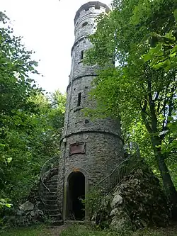 Unmittelbar am Turm befindet sich eine nahezu quadratische Wallanlage bislang unbekannter Zeitstellung und Funktion. Der Wall hat eine Fläche von 70 m × 70 Meter (4.900 m²) mit einer knapp 1 m hohen verstürzten Mauer, die an der Basis bis zu 6 m breit ist. Es wird vermutet, dass es sich bei dem Wall um eine keltische Fluchtburg aus der La-Tène-Zeit (500–20 v. Chr.) handelt.