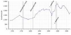 Einwohnerentwicklung von Altenau nach nebenstehender Tabelle. Oben von 1688 bis 2018. Unten ein Ausschnitt ab 1871