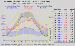 Aufgrund seiner Höhenlage ist Altenau für niedersächsische Verhältnisse ein eher kühler Ort. Die Jahresmitteltemperatur liegt bei +6,2 °C. Die Sonnenscheindauer beträgt im Jahresmittel 3,7 Stunden. Die mittlere jährliche Niederschlagsmenge liegt bei 1252 mm, wovon ein für niedersächsische Verhältnisse nicht unerheblicher Teil als Schnee fällt.