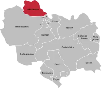 - ↑ Statistisches Bundesamt (Hrsg.): Historisches Gemeindeverzeichnis für die Bundesrepublik Deutschland. Namens-, Grenz- und Schlüsselnummernänderungen bei Gemeinden, Kreisen und Regierungsbezirken vom 27.5.1970 bis 31.12.1982. W. Kohlhammer, Stuttgart / Mainz 1983, ISBN 3-17-003263-1, S. 328 (Statistische Bibliothek des Bundes und der Länder [PDF; 41,1 MB]).