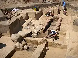 Die erste archäologische Grabung am ehemaligen Standort des Altenhofs, eine Oberflächengrabung, fand im Jahr 2004 statt. Sie wurde durch das Brandenburgische Landesamt für Denkmalpflege durchgeführt. Mit Metalldetektoren fand man geschmiedete Eisennägel, Eisenriegel und anderes. Vom 16. bis 31. Mai 2011 wurde nordöstlich des Klosterpfuhls eine Grabung der Hochschule für Technik und Wirtschaft Berlin durchgeführt. Unter der Leitung von Thomas Schenk untersuchten Grabungstechnik- und Geoarchäologiestudenten die Bodenschichten bis in eine Tiefe von fast drei Metern.[10] Dabei fand man in einer Tiefe von 1,70 Meter auf einer Fläche von 3,00 × 0,60 Metern Reste eines Brennraumes für eine Unterboden-Heißluftheizung. Neben verschiedenen Keramikscherben gilt eine Münze als herausragendes Fundstück. Sie zeigt ein Herrscherbildnis mit Schwert und Adler und der randläufigen Aufschrift „OTTO“. Die Münze konnte bisher nicht datiert werden.[11]