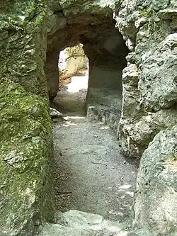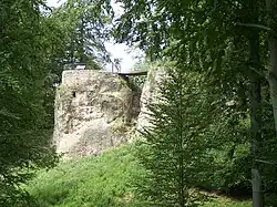 Eine benachbarte Felsgruppe auf der Ostseite des entstehenden erweiterten Parkgeländes wurde mit einem Aussichtspavillon – der sogenannten „Rotunde“ (erbaut um 1800) – versehen. Der Zugang erfolgte durch einen in den Fels gehauenen unterirdischen Gang, der in einer Wendeltreppe endete und zur Aussichtsplattform hinaufführte. Leider ist auch dieses Bauwerk nicht mehr präsent, es musste 1884 demontiert werden. Zu besichtigen sind noch der Stollen und der Treppenschacht.[17] Eine Restaurierung und Wiederherstellung ist geplant.