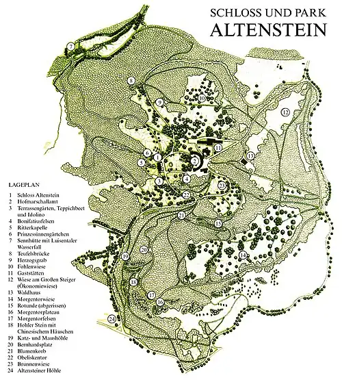 - ↑ a b Parkführer der Stiftung Thüringer Schlösser und Gärten sowie des Fördervereins Altenstein-Glücksbrunn
