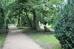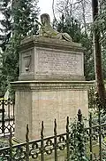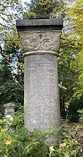 | Friedrich Wilhelm Funke | 1785–1862[5] | Kaufmann und Bürgermeister | Zwei gusseiserne Kreuze, Felsen und klassizistischer Pfeilergrag. Größeres Kreuz verziert mit dem Haupt Christi mit dem Dornenkranz. | Christian Friedrich Tieck (Haupt Christi) | |