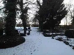 Als 1750 die große hölzerne Freitreppe an die Kirche angebaut wurde, musste der Zugang zum Friedhof umgestaltet werden, da es zwischen dem Pfarrhaus und der Freitreppe kaum mehr einen würdigen Raum für Begräbnisgesellschaften gab.