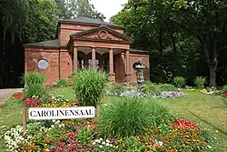 Zwischen 1973 und 1976 erfolgte die Umwandlung des ehemaligen Friedhofs in einen Stadtpark, dabei wurden viele Gräber abgeräumt, aber einige der kunsthandwerklich und stadtgeschichtlich wertvollsten erhalten. Die alte Einsegnungshalle wurde nach dem Krieg unter anderem als Depot für die Stadtgärtnerei genutzt und war zeitweise für den Abriss vorgesehen. 1986 wurde sie als Kulturdenkmal unter Schutz gestellt, 1993 erfolgte nach mehrjährigem Umbau die Einweihung als Veranstaltungsstätte Carolinensaal, benannt nach der Großen Landgräfin Caroline von Hessen-Darmstadt. 1998 wurde die Parkanlage um neun moderne Skulpturen im Rahmen eines Internationalen Bildhauersymposiums ergänzt.[6]