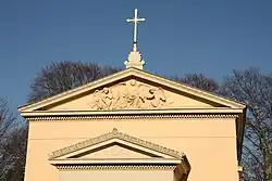 Die heute nach ihrem Architekten, dem Schinkelschüler Ferdinand von Arnim, benannte kleine Kapelle und Trauerhalle auf dem Alten Friedhof Potsdam ist eines der bedeutendsten erhaltenen klassizistischen Friedhofsgebäude. Im Stil einer eingeschossigen Villa errichtet, zeigt die Fassade über einer Portikus mit zwei ionischen Säulen ein figurenbesetztes und von Friesen gerahmtes Tympanon. In der Arbeit des Potsdamer Bildhauers Wilhelm Koch sind drei Engel dargestellt, die einen Verstorbenen emporheben. Der Dreiecksgiebel der Portikus wie auch die Basis des den Hauptgiebel bekrönenden Kreuzes sind mit Palmetten geschmückt.