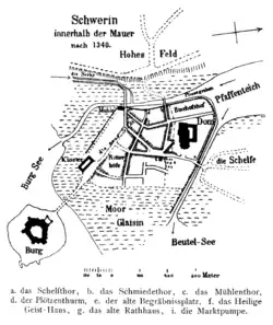 Es wird angenommen, dass spätestens seit dem 10. Jahrhundert durch das damals weitgehend sumpfige Gebiet eine Verbindung zur Slawenburg Zuarin verlief, die mit einem Damm und einer Brücke etwa dem heutigen Straßenverlauf folgte.[3] Jedoch ist die frühe Nutzung des Geländes weder durch schriftliche Quellen noch durch archäologische Funde dokumentiert.