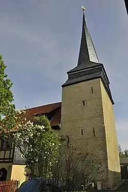 • Die Dorfkirche St. Pankratii. Die Kirchgemeinde gehört mit den Kirchgemeinden Mülverstedt, Waldstedt, Weberstedt und Zimmern zur Pfarrstelle Schönstedt im Evangelischen Kirchenkreis Mühlhausen.