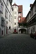 Die Anlage mit ihren Ecktürmen wurde im 16. und 17. Jahrhundert zu einer respektablen Renaissanceanlage erweitert, mit beachtenswerten Stuckdecken im Inneren. Die eichenhölzerne Kassettendecke aus der Renaissance im großen Saal wurde unter eine ältere, noch zum Teil erhaltene Stuckdecke gebaut; sie ist freitragend und stellt eine außerordentliche statische Leistung dar. Vier unterschiedlich hohe Flügel umschließen einen unregelmäßigen Innenhof. Galerien und üppige Bemalung um Fenster und Türen schmücken den Hof.