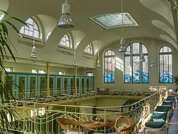 Im Gebäude befindet sich ein vom Bad aus zugängliches Café. Es gibt außerdem ein Wellness-Angebot, eine finnische Sauna, ein römisch-irisches Schwitzbad und eine Biosauna.