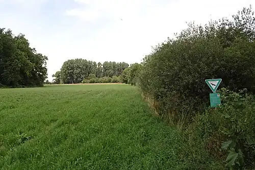 Naturschutzgebiet „Altneckarlachen von Alsbach, Hähnlein und Bickenbach“. Blick von der Wiese am Weilerhügel nordwärts zur Hainlache (2020) | ||