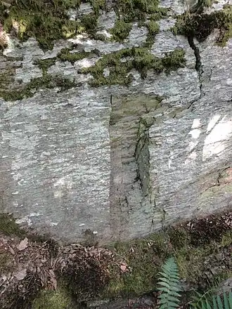 Bearbeitungsspuren im Fels im Bereich des Burgstalls | ||