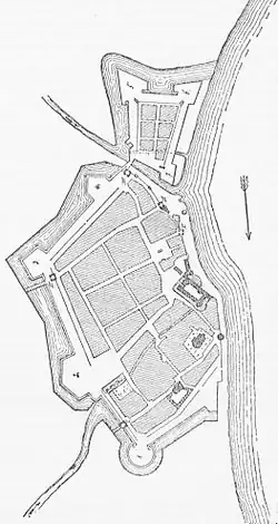 • Mit der Errichtung der Zitadelle wurde das Stadtgelände ab der ersten Hälfte des 16. Jahrhunderts im Süden wieder vergrößert und deren urbane Erschließung und Bebauung begann etwa ab Mitte des folgenden Jahrhunderts.
