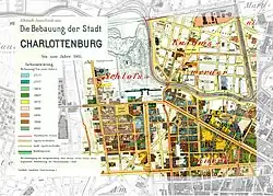 Der älteste Bereich der Altstadt ist das Dorf Lietzow. Die Stadt Charlottenburg entwickelte sich jedoch ausgehend vom nahe dem Dorf Lietzow seit 1695 von Sophie Charlotte errichteten Schloss Lützenburg, das ihr Gatte Friedrich I. nach ihrem Tode, ebenso wie die angrenzende Siedlung Charlottenburg nannte. Diese Siedlung war noch einmal unterteilt durch den Schwarzen Graben, der in diesem Bereich zeitweise zu einem Karpfenteich aufgestaut war, in einen östlichen Teil mit Kirche (Luisenkirche auf dem heutigen Gierkeplatz) und Marktplatz (auf dem Richard-Wagner-Platz) und einen westlichen Teil mit Häusern für die Schlossbediensteten im Bereich der Schloßstraße. Beide Teile waren zunächst nur durch die heutige Schustehrusstraße verbunden.