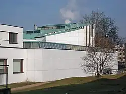 Das Kulturhaus grenzte mit der Kinderbibliothek an der Südostseite anfangs noch an die Grünflächen des Klieversbergs. In den 1960er Jahren wurden im Dachgarten Tanztees mit Blasmusik abgehalten.[4] Teil des Hauses war eine lineare Ladenzeile an der damals noch befahrenen Porschestraße, in der kleinteiliger Einzelhandel ansässig war, darunter ein Blumengeschäft und ein Reisebüro.[5] Später wurden in den ehemaligen Ladengeschäften Ausstellungsflächen für die Bibliothek und Räume für sonstige kulturelle Aktivitäten eingerichtet.