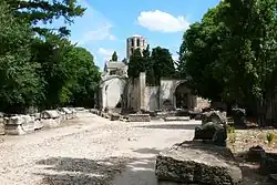 Die Nekropole Alyscamps war ursprünglich wesentlich größer als die heute noch bestehenden Reste. Mit dem Bau einer Eisenbahnstrecke im 19. Jahrhundert wurde der südliche Teil der Gräberstraße vernichtet.