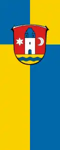 „Die Flagge zeigt das Wappen auf 2 blau-gold gedrittelten Flaggenbahnen in verwechselten Farben.“[20]