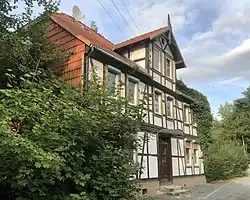 Der zweigeschossige Bau wurde in der zweiten Hälfte des 18. Jahrhunderts in Fachwerkbauweise errichtet. Bedeckt ist das Haus von einem Krüppelwalmdach. Mittig auf dem Gebäude befindet sich ein zweiachsiges Zwerchhaus, das mit einem Sprengwerk verziert ist.