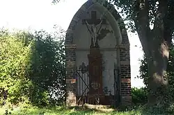Auf einer Anhöhe steht das denkmalgeschützte Heiligenhaus Am Kreuzberg. Früher handelte es sich um ein normales Flurkreuz. Es ist davon auszugehen, dass der Straßenname von diesem „Kreuz am Berg“ abgeleitet ist.