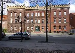 Amtsgericht | In dem Verwaltungsgebäude befindet sich seit 1983 das Amtsgericht. Erbaut wurde das Haus ab 1845, fertiggestellt wurde es laut einer Inschrift im Jahre 1849. Die Fassade hat 11 Achsen, an den Ecken befinden sich dreiachsige Risalite. Die Fassade ist im neugotischen Stil gehalten mit Anlehnungen an den Tudorstil. Das flache Walmdach wird von einem Zinnenkranz aus gelben Ziegeln teilweise verdeckt. | 30668342 |