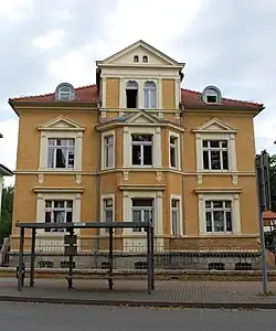 Die zweigeschossige Villa entstand in der Zeit um das Jahr 1900 im Stil des Spätklassizismus. Zur Straßenseite hin verfügt der Bau über einen Mittelrisalit, der durch einen Standerker zusätzlich betont wird. Die Fassade ist mit gelben Klinkern gestaltet. An den Fenstern befinden sich Putzgliederungen.