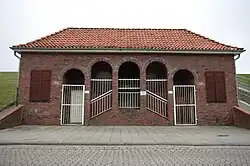 - Eingeschossige Bedürfnisanstalt Am Seedeich von 1926 mit fünf runden Arkaden (D)