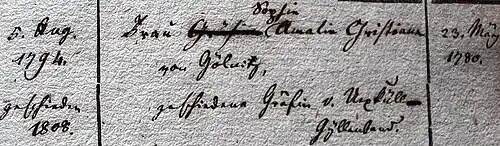 - Emilie Amalie von Uxkull-Gyllenband (* 13. Mai 1796) ⚭ NN von Laroche-Starkenfels