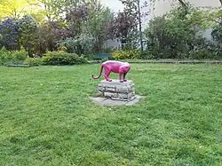 - Nr. 3: Auf der zum Park gehörenden Grünfläche steht die Tierplastik Jaguar von Heinrich Drake (54 cm hoch und 1,13 m lang)